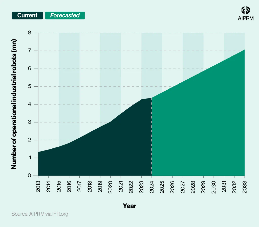 10. According to the IFR, the total operational stock of industrial robots globally was approaching 4.3 million units in 2023.
