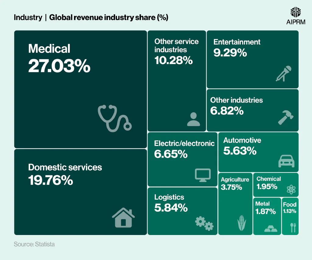 2. The medical sector is projected to account for around a quarter (27.03%) of the global robotics market in 2025.