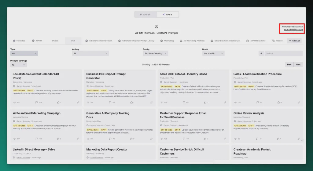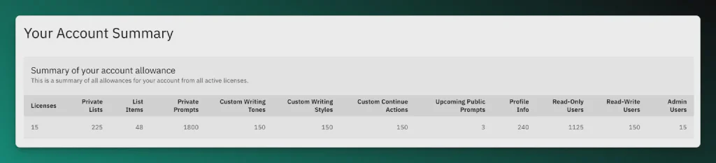 Als eigenaar van een klein bedrijf ken je de waarde van effectieve hulpmiddelen die je team kunnen helpen om meer gedaan te krijgen. Dat is waar de Multi Seat Business Plans van AIPRM van pas komen. Zie het als het kopen van een enkele AIPRM Elite Licentie en het delen van de krachtige functies met iedereen in je bedrijf, ongeacht hoe groot of klein je team is. Het is alsof je iedereen een VIP-pas geeft voor de beste AI-tool voor contentcreatie die er is.